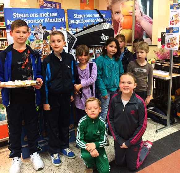 De kartonnen actiemunten worden aan het eind van de jaarlijkse jeugdsponsoractie in klinkende munt omgezet. De opbrengst is bestemd voor een tri-tennisoefentoestel voor jong en oud. Onderstaand een aantal kinderen, die zich super hebben ingezet. Een aantal wist niet van ophouden. Ook de weekactie - 5 tompoucen voor een mooi prijsje - werd goed aan de man gebracht. Al met al een geslaagde actiedag.