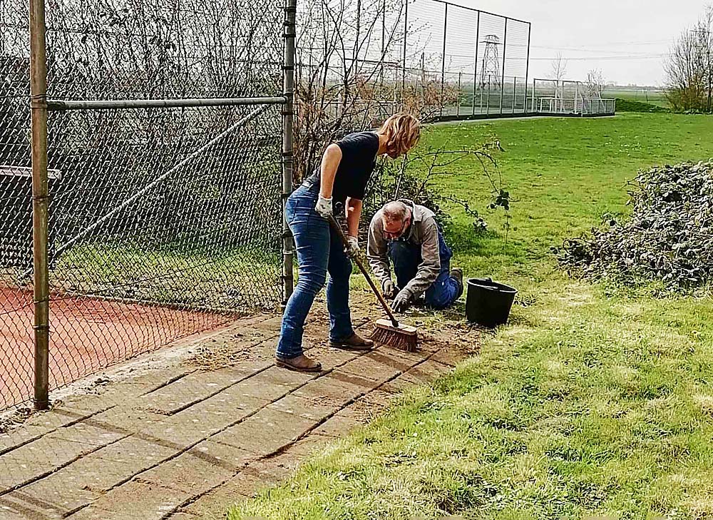 De wel aanwezige klussers zijn zaterdag 8 april 2023 hard aan de slag gegaan met het verwijderen van onkruid rond de tennisbanen. Jeugdlid Gerben Hannema maakte een heel stuk van de tegels voor de kantine schoon. ,,Dat is goed te zien als je de foto’s ziet van voor en na het verwijderen van het onkruid. Dan zie je hoe nodig zo’n klusdag is en het geeft ook voldoening.’’ Overigens lukte het niet om alle onkruid te weghalen.